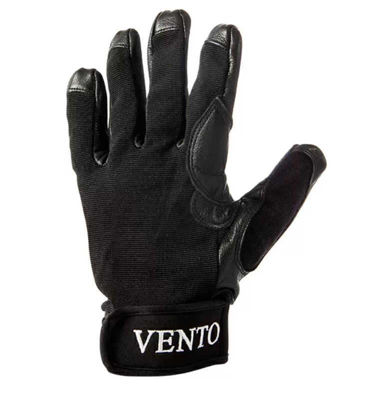 Защита ладони и пальцев обеспечивается благодаря двойному слою натуральной кожи. Верхняя часть перчатки выполнена из дышащего, эластичного нейлона. Манжеты из тонкого неопрена с застежкой на липучке позволяют регулировать обхват кисти руки.